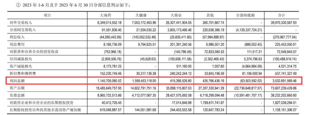 2023年上半年,大南药板块仅较去年同期微涨6%至63亿元,大健康板块则微涨8%至70亿元。