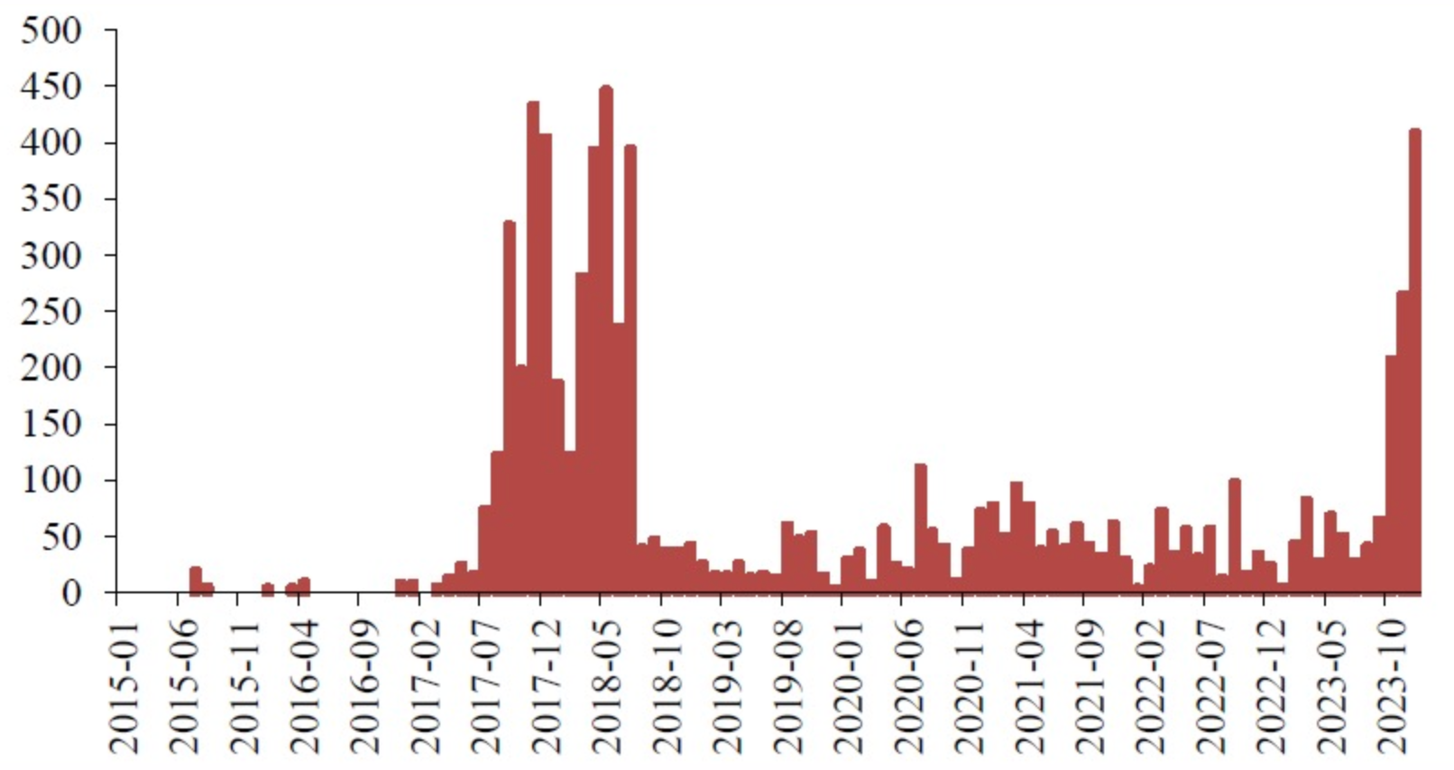 根据财通证券研究所的统计,2023年10月至12月公告的城投债提前兑付金额分别为207.6亿元、264.99亿元、408.57亿元(截止至12月15日)。