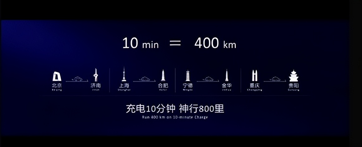 基于此,神行超充电池拥有了三个优势。首先,最显而易见的是加快了电池充电速度,神行超充电池支持“4C超充”(四分之一小时,即15分钟就可将电池电量充满;其次是降低了4C超充的上车门槛(磷酸铁锂成本比三元锂更低);最后是改善电池在低温环境下的补能表现,在-10℃低温环境下可实现30分钟充至80%,在低温亏电状态下零百加速不衰减。
