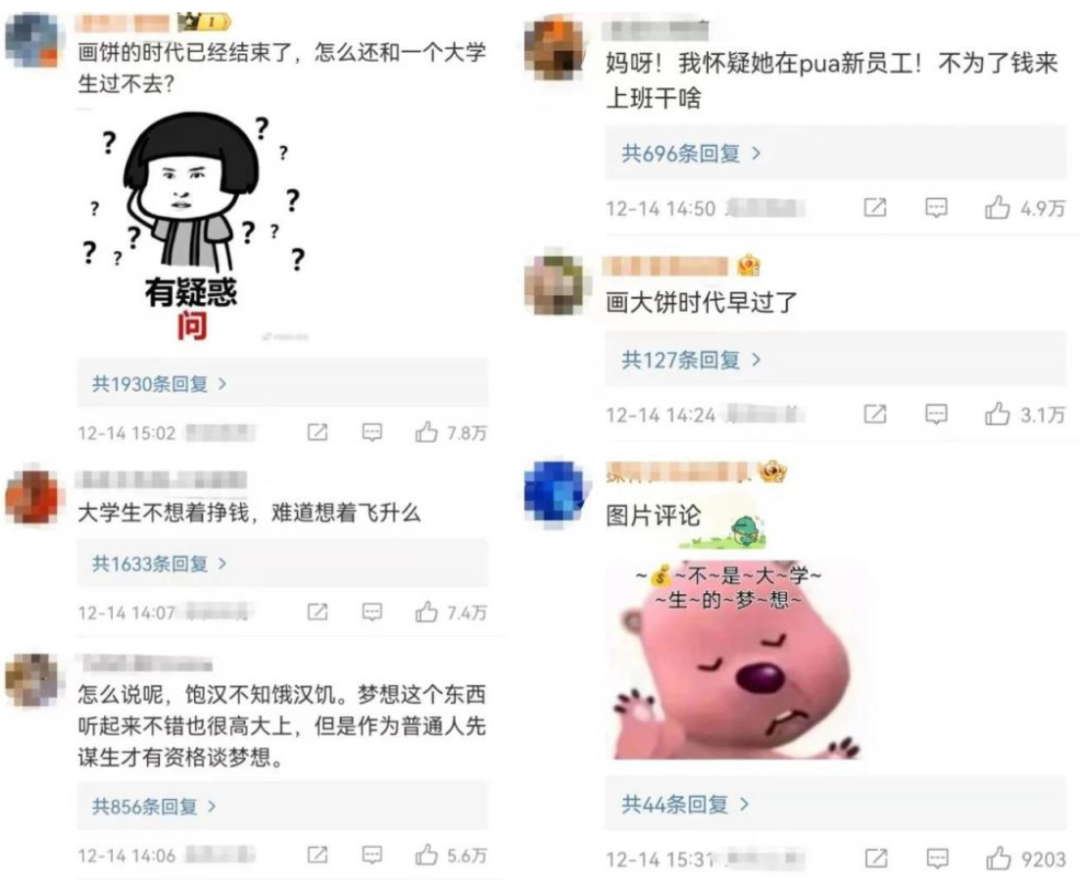 传统公司强势的企业文化,在追求自由、散漫的年轻人中没有生存土壤,他们青睐于实打实看得到的利益,接不住、也不想要老板画的大饼。一旦年轻人不为资本“做牛做马”,资本便会物色新的“牛马”。