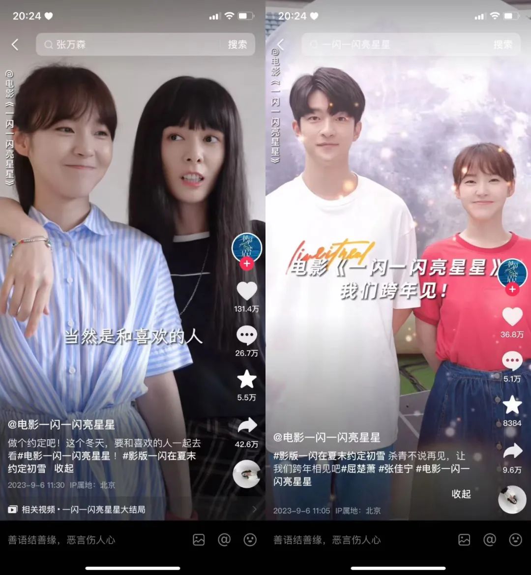 首先这部电影有个“好底子”。剧版《一闪一闪亮星星》虽然不算出圈爆火,但受众足够稳定垂直、热情也足够高,更重要的是剧版《一闪一闪亮星星》的故事发展和结局留下了重大去情感遗憾,为电影版提供了扩大营销投入的“立足点”。