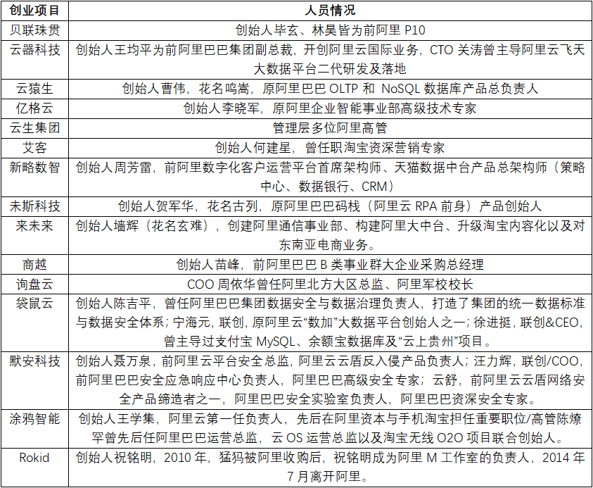 需要指出的是,元璟资本的投资项目,存在与阿里协同的可能。光子星球梳理了其中14个阿里系创业者的企业服务项目,我们发现,许多被投项目创业者或者高管,为前阿里核心技术骨干。