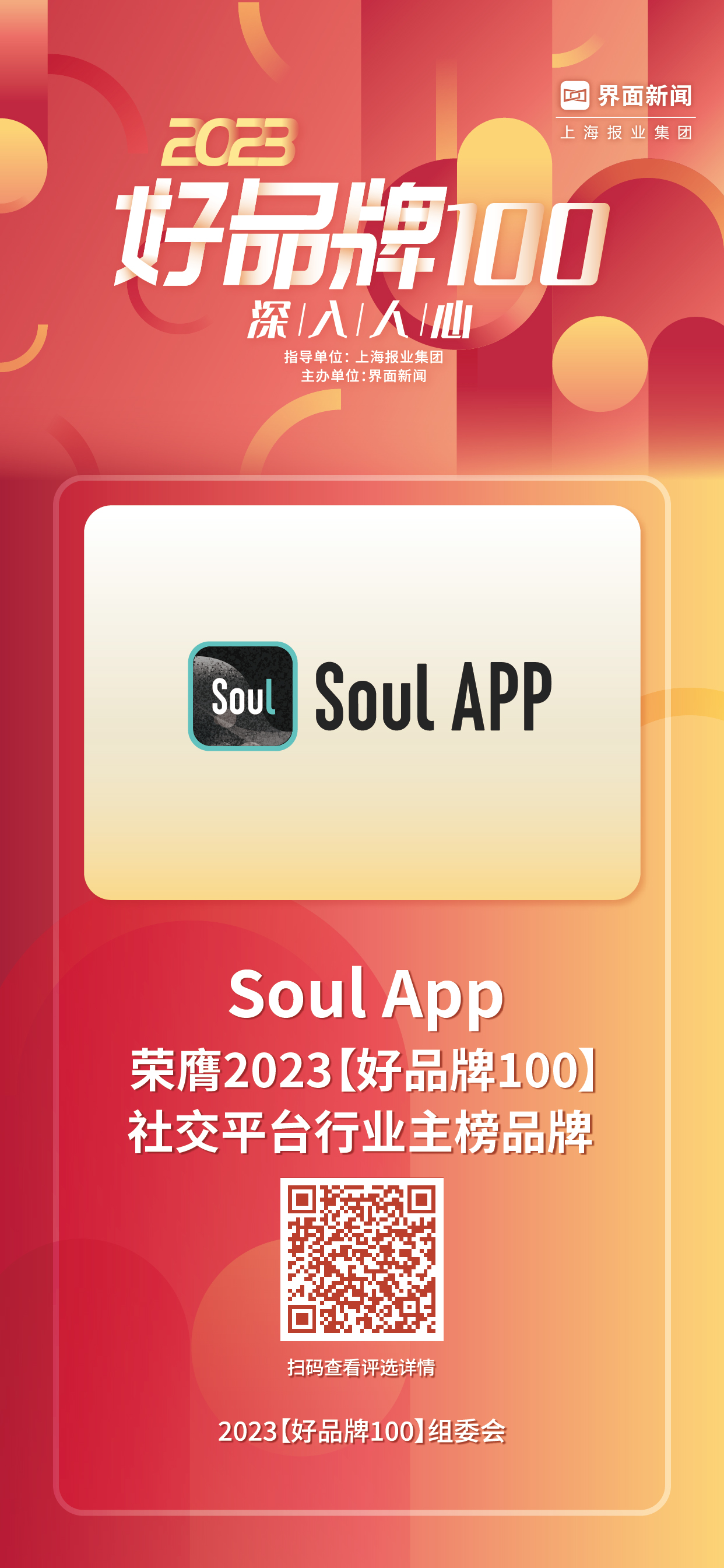 12月20日,上海报业集团|界面新闻在前滩香格里拉举办了2023【好品牌100】颁奖典礼,隆重公布本年度获奖名单,每个行业仅有1个品牌脱颖而出,荣登2023【好品牌100】主榜。Soul App以拥有核心竞争力的品牌价值,荣膺2023【好品牌100】社交平台行业主榜品牌。