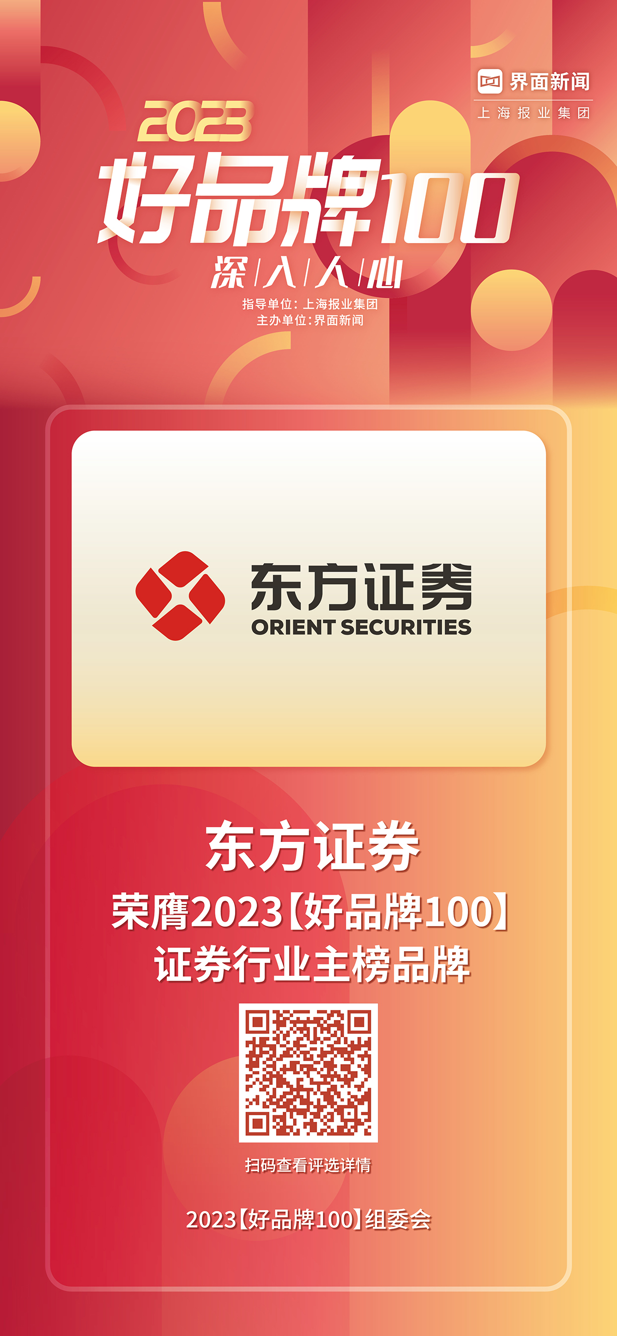 12月20日,上海报业集团|界面新闻在前滩香格里拉举办了2023【好品牌100】颁奖典礼,隆重公布本年度获奖名单,每个行业仅有1个品牌脱颖而出,荣登2023【好品牌100】主榜。东方证券以拥有核心竞争力的品牌价值,荣膺2023【好品牌100】证券行业主榜品牌。
