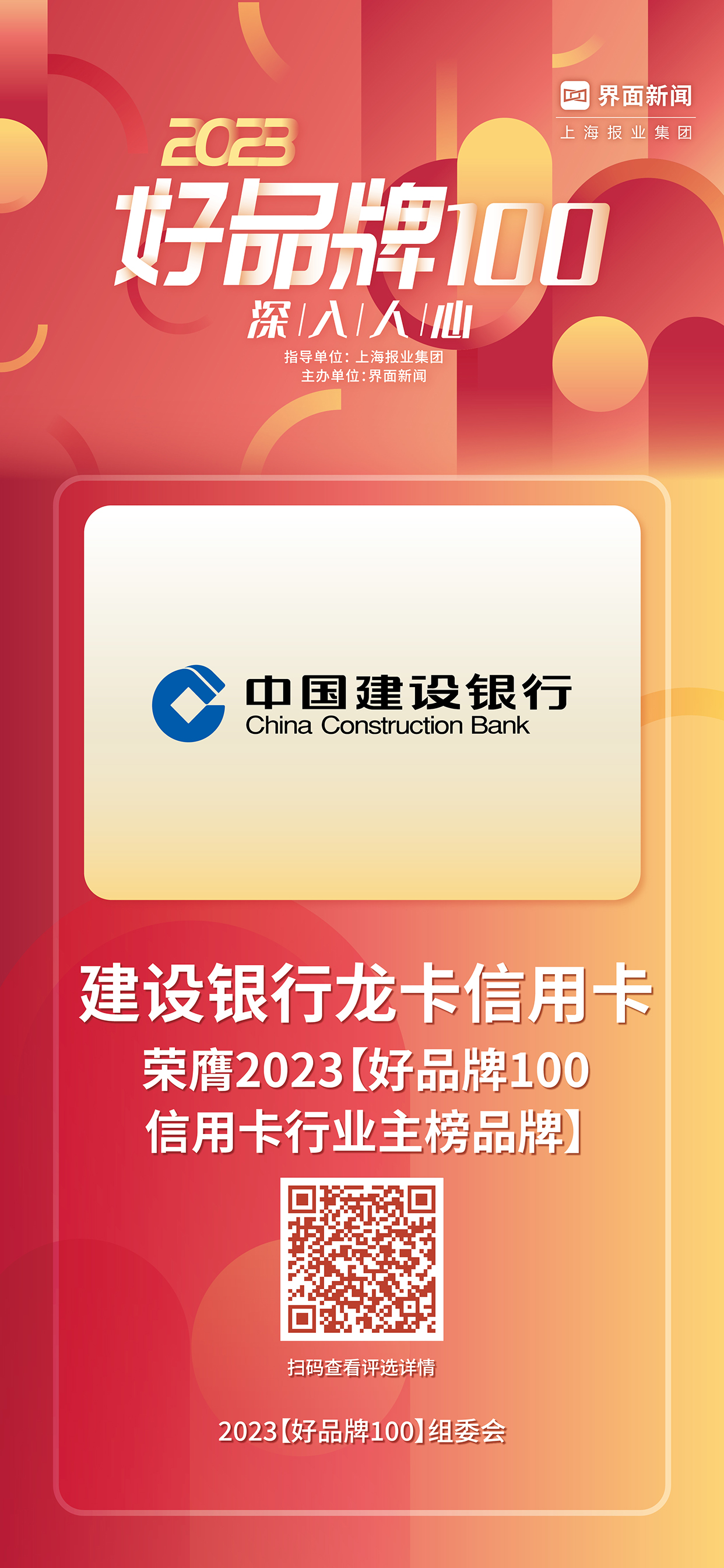 12月20日,上海报业集团|界面新闻在前滩香格里拉举办了2023【好品牌100】颁奖典礼,隆重公布本年度获奖名单,每个行业仅有1个品牌脱颖而出,荣登2023【好品牌100】主榜。建设银行龙卡信用卡以拥有核心竞争力的品牌价值,荣膺2023【好品牌100】信用卡行业主榜品牌。