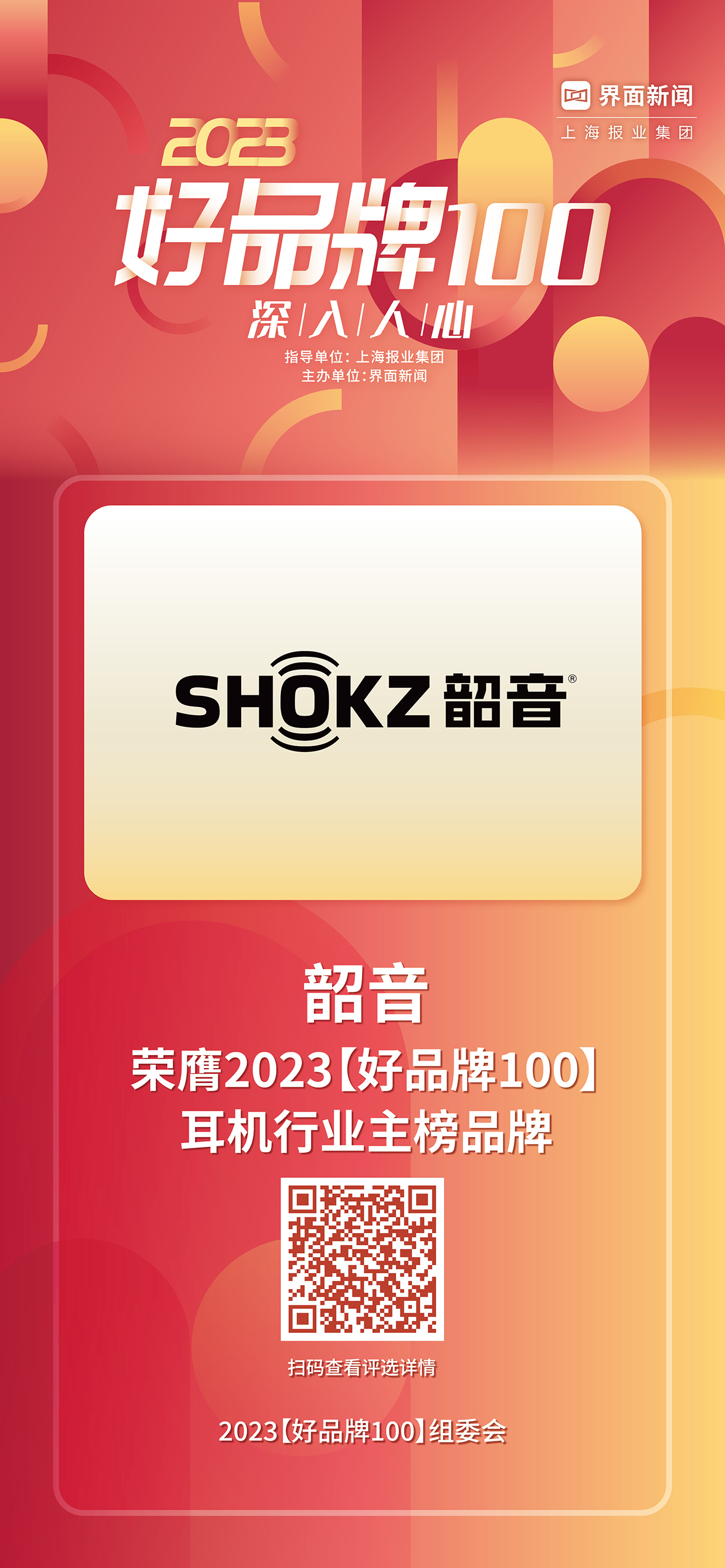 12月20日,上海报业集团|界面新闻在前滩香格里拉举办了2023【好品牌100】颁奖典礼,隆重公布本年度获奖名单,每个行业仅有1个品牌脱颖而出,荣登2023【好品牌100】主榜。韶音以拥有核心竞争力的品牌价值,荣膺2023【好品牌100】耳机行业主榜品牌。