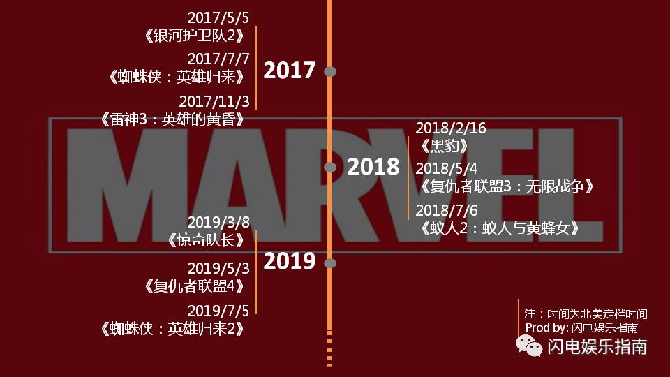 有人认为漫威已经发展到了极限,2017年的到来将很快证明他们错了。MCU从2008年开始启动,每年会发行3部电影,至少到2019年前都将保持这个速度。(附:MCU未来3年时间线)