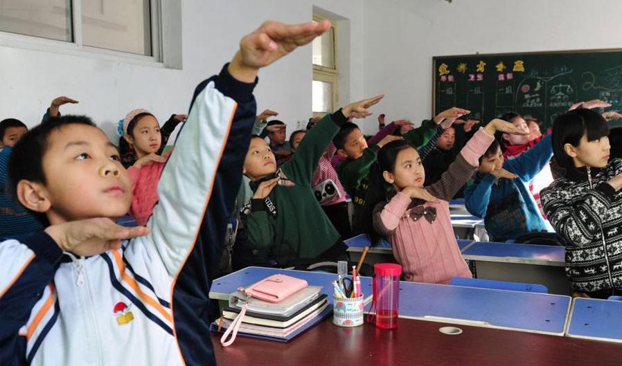 据媒体报道,近日在一些雾霾肆虐的地区,不少中小学流行起一种名为“防霾武术操”的锻炼方法。