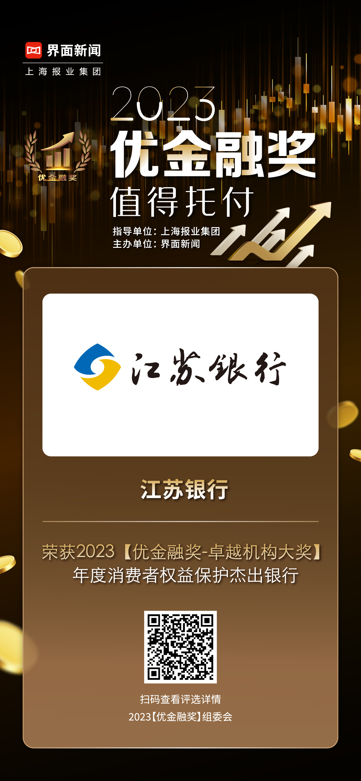 12月20日,上海报业集团|界面新闻在上海前滩香格里拉酒店举办了2023【优金融奖】颁奖典礼,并正式公布了本年度获奖名单。在这项万众期待的金融业年度评选中,来自银行、保险、证券基金、信托、资管、金融科技、财富管理、移动支付、融资担保等领域的金融机构与企业,凭借年度市场表现与行业影响力,获得年度大奖。其中,江苏银行凭借其在行业内的优异表现,荣膺卓越机构大奖——年度消费者权益保护杰出银行。