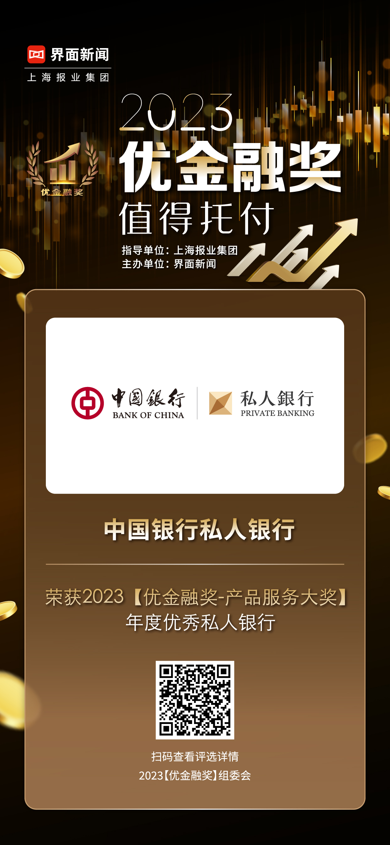 12月20日,上海报业集团|界面新闻在上海前滩香格里拉酒店举办了2023【优金融奖】颁奖典礼,并正式公布了本年度获奖名单。在这项万众期待的金融业年度评选中,来自银行、保险、证券基金、信托、资管、金融科技、财富管理、移动支付、融资担保等领域的金融机构与企业,凭借年度市场表现与行业影响力,获得年度大奖。其中,中国银行私人银行凭借其在行业内的优异表现,荣膺产品服务大奖——年度优秀私人银行。