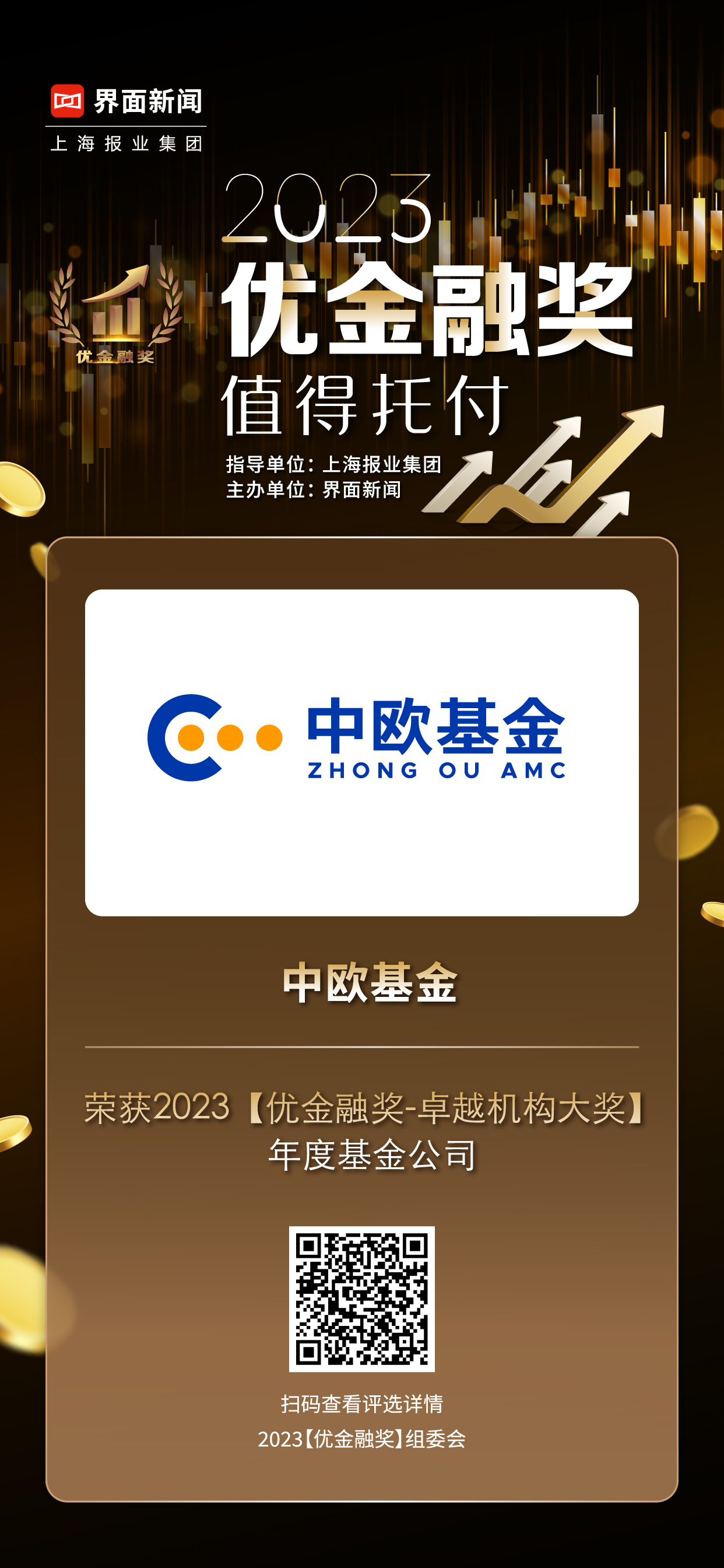 12月20日,上海报业集团|界面新闻在上海前滩香格里拉酒店举办了2023【优金融奖】颁奖典礼,并正式公布了本年度获奖名单。在这项万众期待的金融业年度评选中,来自银行、保险、证券基金、信托、资管、金融科技、财富管理、移动支付、融资担保等领域的金融机构与企业,凭借年度市场表现与行业影响力,获得年度大奖。其中,中欧基金凭借其在行业内的优异表现,荣膺卓越机构大奖——年度基金公司。