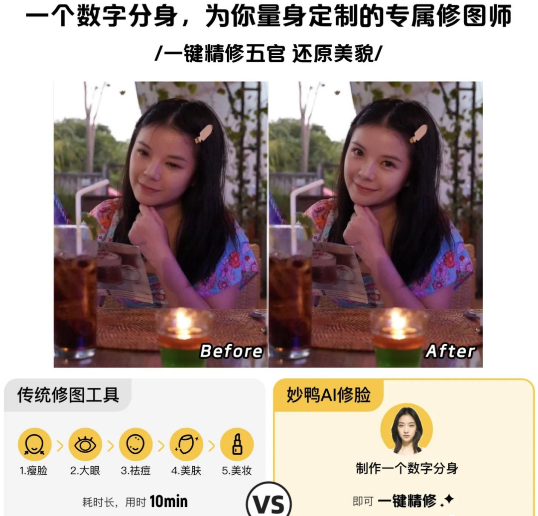 但客观来讲,“AI修脸”想要承接AI写真带来的流量,替妙鸭留住用户,并不容易。