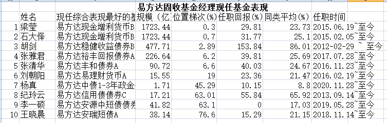 这说明,易方达公司固收基金经理队伍相对稳定,对于追求稳定收益的大资金而言,这是一个好消息。