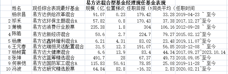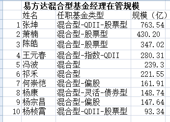 也就是说,易方达混合型基金在管规模TOP10 经理,对当初带来巨大荣誉的基金,集体坚守到了当下。从对基民负责角度来说,这种坚守不失为一种利好。