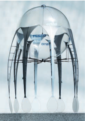 据Festo官网介绍,通过蠕动实现推进在航空史上是空前的, AirJelly是首个以蠕动为驱动力的室内飞行物体。