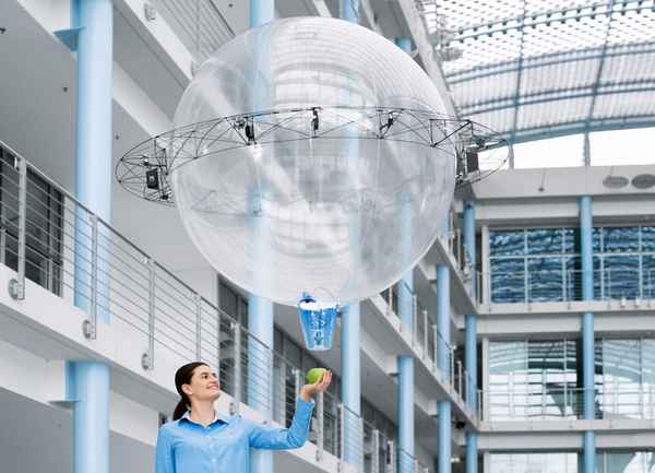 2016年早些时候,Festo发布了一款名为FreeMotionHandling的飞球自动运载工具,可自动装卸重达400g的物品。该飞行球直径为137cm,由球体、转子填充环和抓取器组成,净重仅有50克,充满氦气后也仅有1400克重。值得注意的是,该机器人的抓取器设计灵感来源于变色龙的舌头。