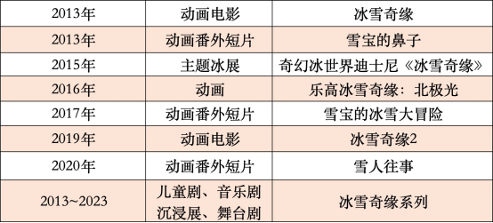2013年《冰雪奇缘》上线后不久,以影片中高人气角色雪宝为主角的番外短片《雪宝的鼻子》就上线了,在此后的两三年又上线了《雪宝的冰雪大冒险》《雪人往事》《冰雪奇缘:生日惊喜》《乐高冰雪奇缘:北极光》等番外短片,通过内容持续更新来维持IP的热度。