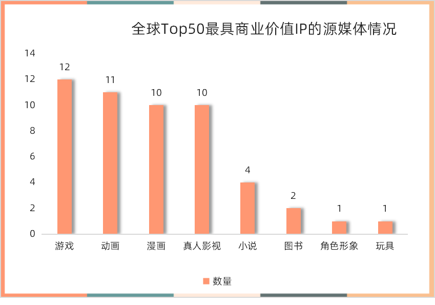 回顾历年最具商业价值IP榜,游戏、动画、漫画、真人影视IP在商业价值延展方面的表现都很突出,四类IP在TOP50的榜单分走了超80%的席位。