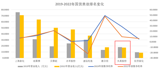 图:2019-2022年国货美妆排名变化,来源:上市公司财报
