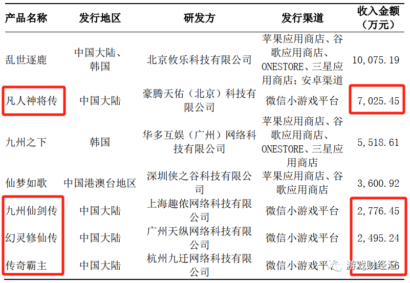 名臣健康自去年开始布局小游戏。根据名臣健康关于深交所《问询函》的回复公告,2022年公司游戏发行收入前七大产品中有4款都是微信小游戏,包括豪腾《凡人神将传》、趣侬《九州仙剑传》、广州天纵《幻灵修仙传》、九迁网络《传奇霸主》。