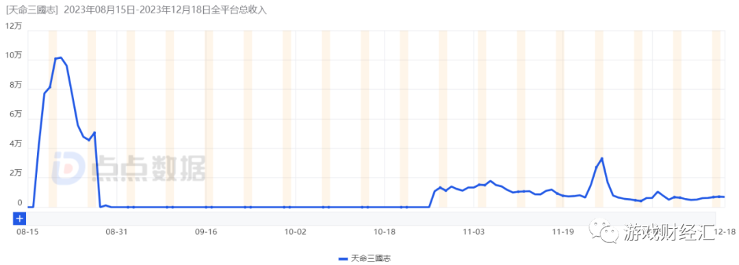 图:《天命三国志》iOS端收入情况;来源:点点数据