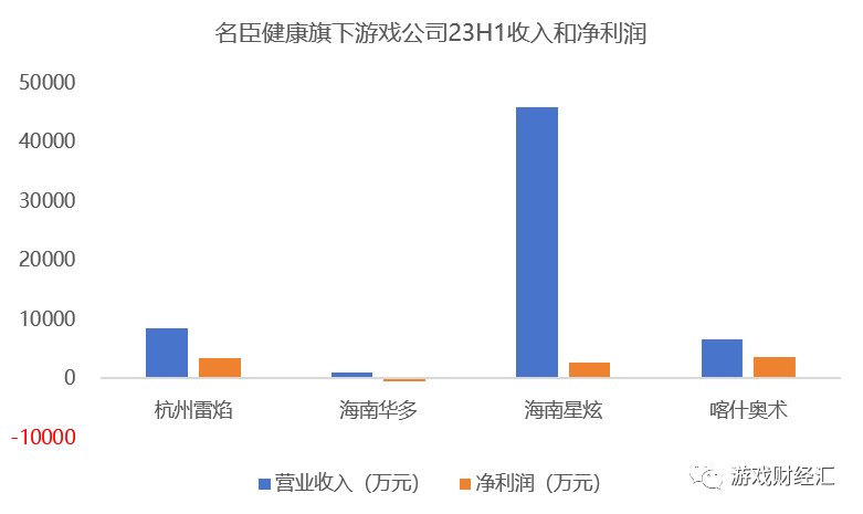目前海南星炫是名臣健康游戏收入最主要的来源,上半年收入达4.6亿元,净利润超2500万元,贡献了超7成收入,近3成净利润。不过名臣健康旗下其它游戏公司则表现各异,雷焰、奥术都保持“小而美”的状态,营收较低,但好在还有利润。华多则是体量最小且还在亏损。