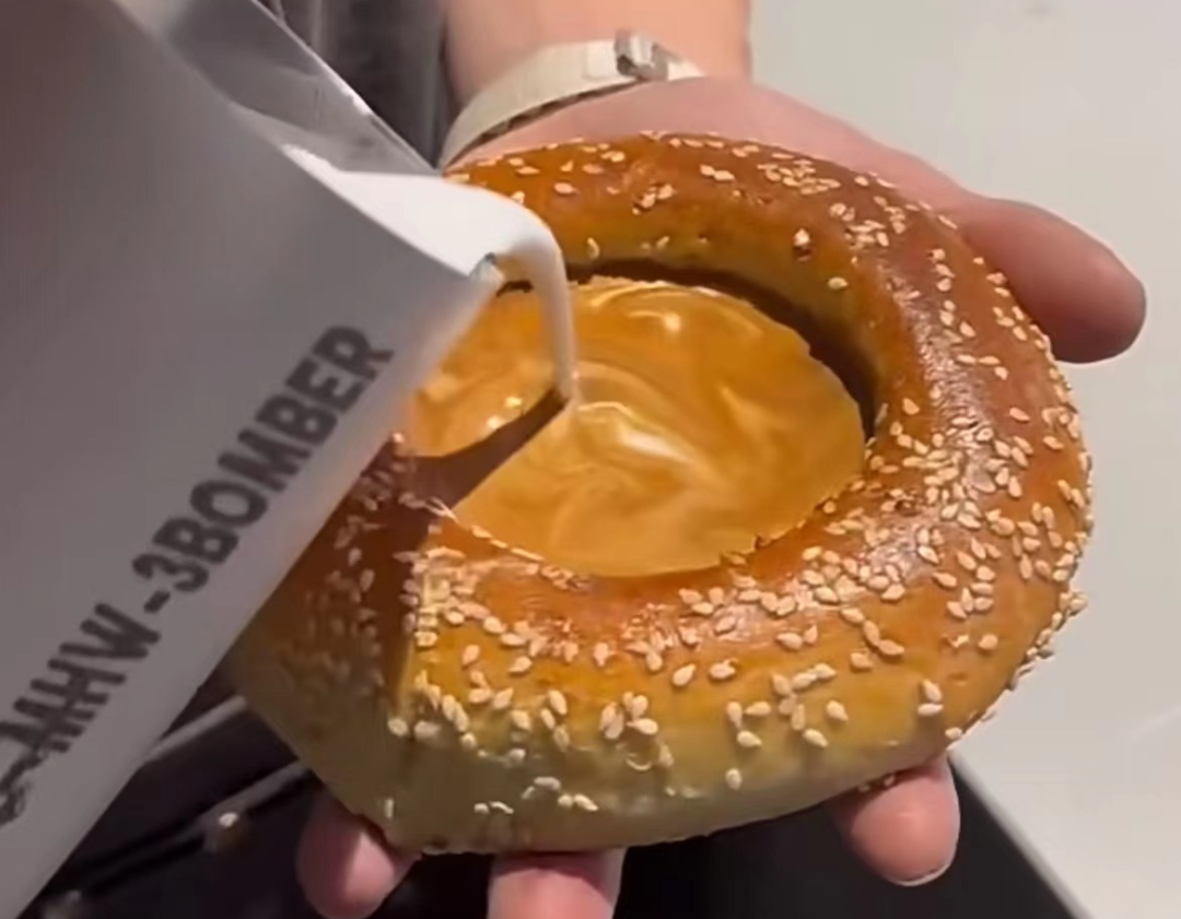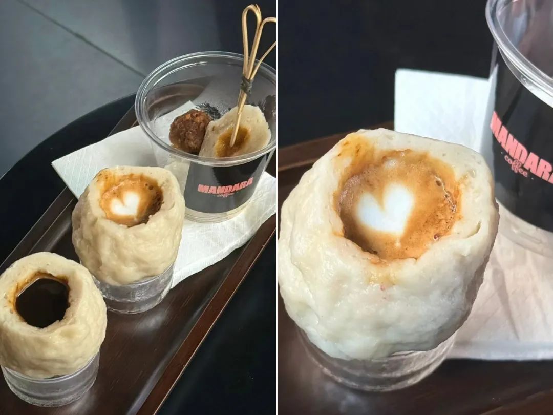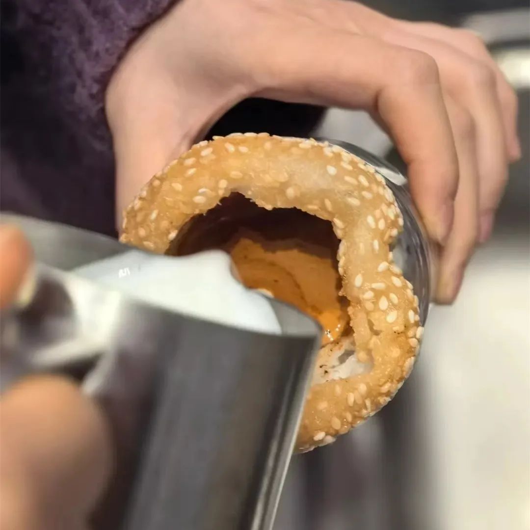 同样被热议的还有一款新疆的“烤馕拿铁”,把咖啡倒入窝窝馕中间的小圆窝中。网友看到后纷纷表示:这时候我应该拿勺子还是吸管?