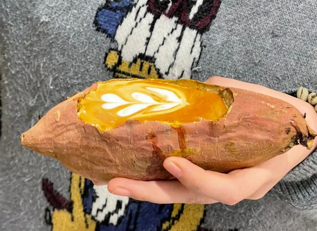 同一个创作思路下,次第登场的还有:麻球拿铁、番茄拿铁、苦瓜拿铁、南瓜拿铁、土豆咖啡、苹果拿铁、烤红薯拿铁……