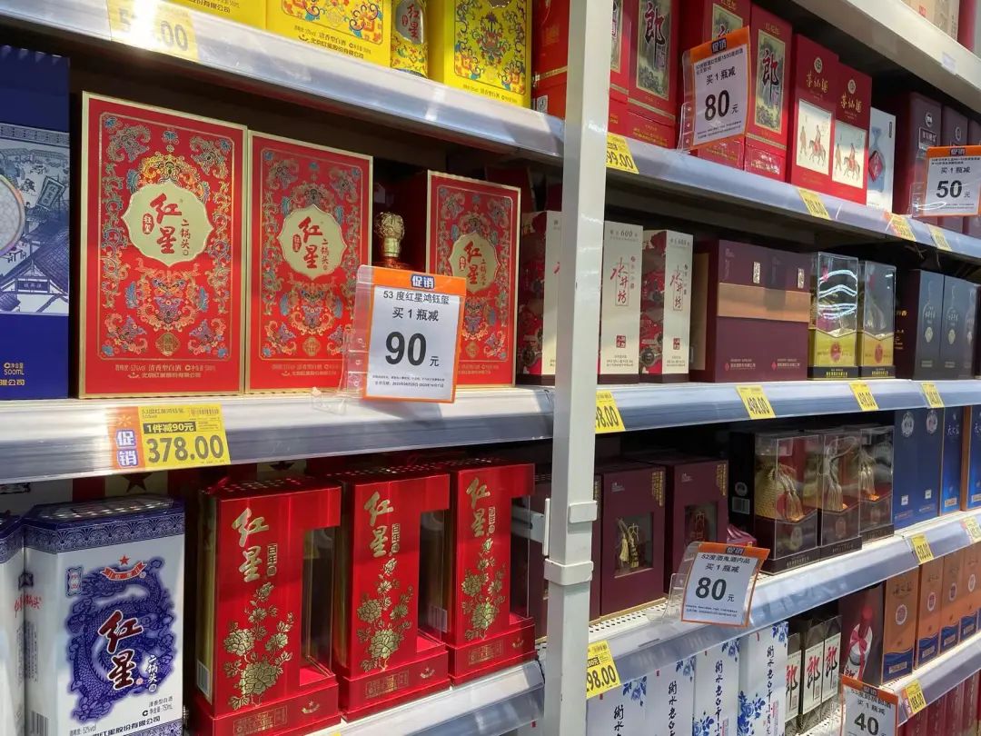 酒讯调查某京客隆店内的白酒生产日期,发现牛栏山、红星二锅头产品的生产日期大多为22年。红星二锅头集中为22年6月及9月生产,少部分生产日期为23年2月;牛栏山二锅头日期则更早,为22年10月居多。店内有牛栏山折扣产品捆绑销售,生产日期为2020年7月的500ml52度珍品陈酿,捆绑23年1月的小瓶酒折扣价销售。