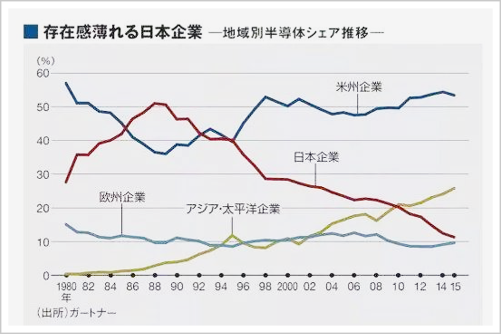 1980年到2015年,世界各国芯片企业的市场占有率