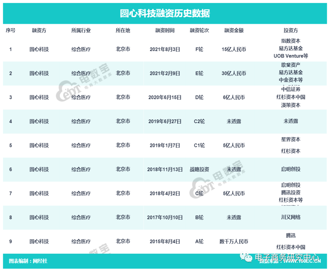 据网经社企业库(COP.100EC.CN)显示,圆心科技成立于2015年,董事长兼CEO何涛。作为一家医疗健康公司,提供专注于患者的医疗服务周期的服务。目前,圆心科技拥有院外综合患者服务、供给端赋能服务及创新医疗健康服务三大业务。