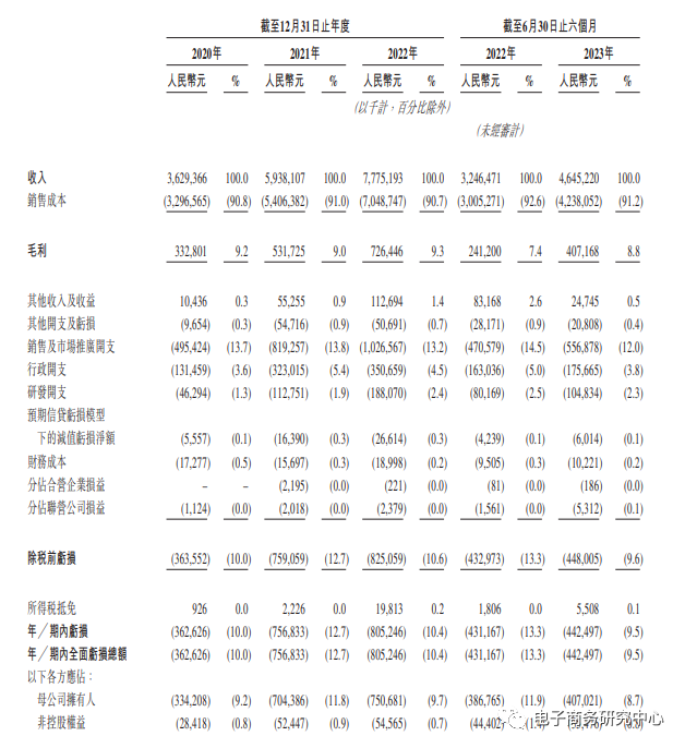 利润方面,招股书还显示,圆心科技2020年、2021年、2022年期内亏损分别为3.63亿、7.57亿、8.05亿元;年内亏损率分别为10%、12.7%、10.4%。经调整亏损分别为3.12亿、6.2亿、6.96亿元;经调整亏损率分别为8.6%、10.4%、9%。2023年上半年期内亏损为4.4亿元,上年同期的期内亏损为4.3亿元;经调整亏损为3.91亿元,上年同期的经调整亏损为4亿元。