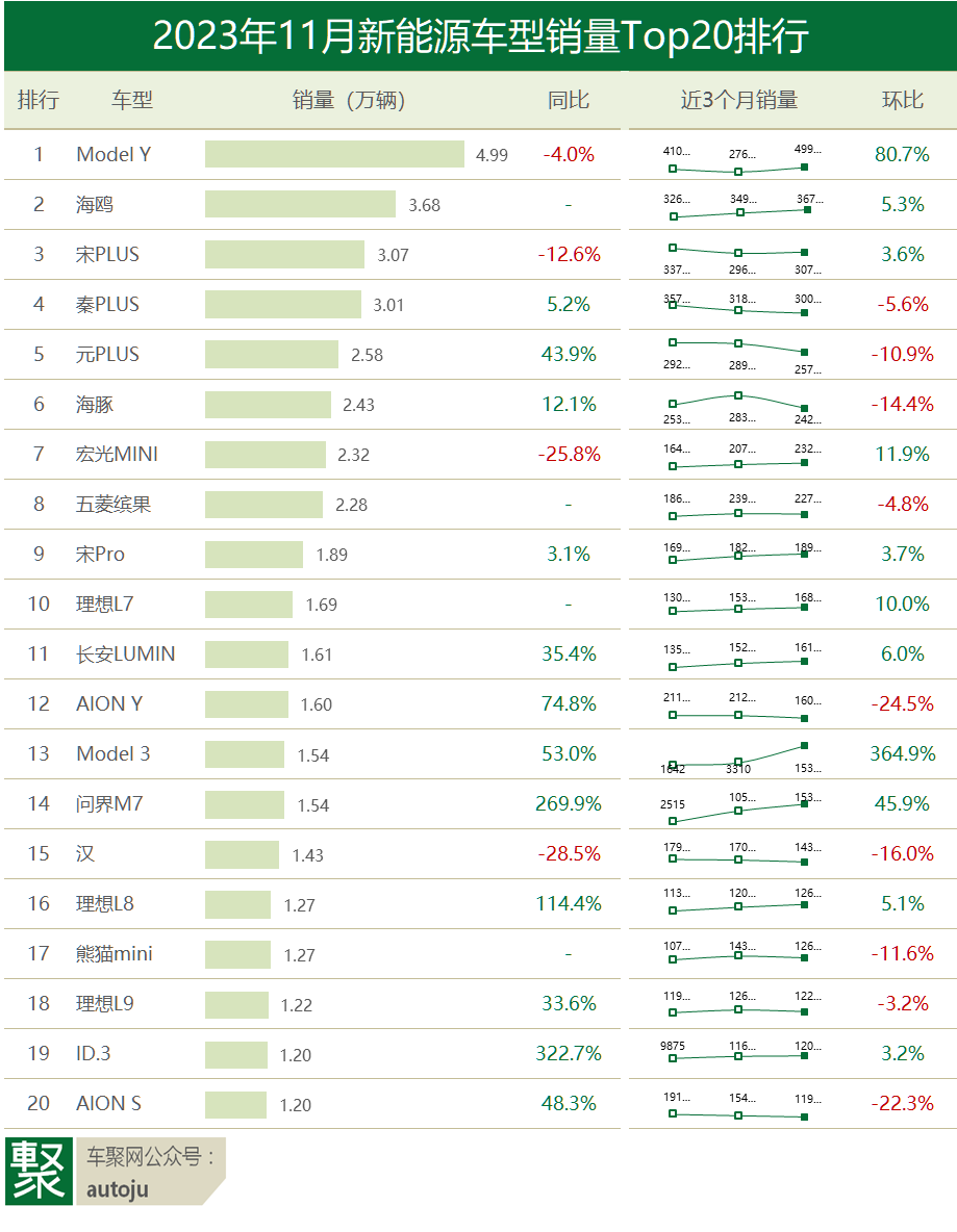 最后,奉上11月新能源车型榜,大家各找感兴趣的车型吧。