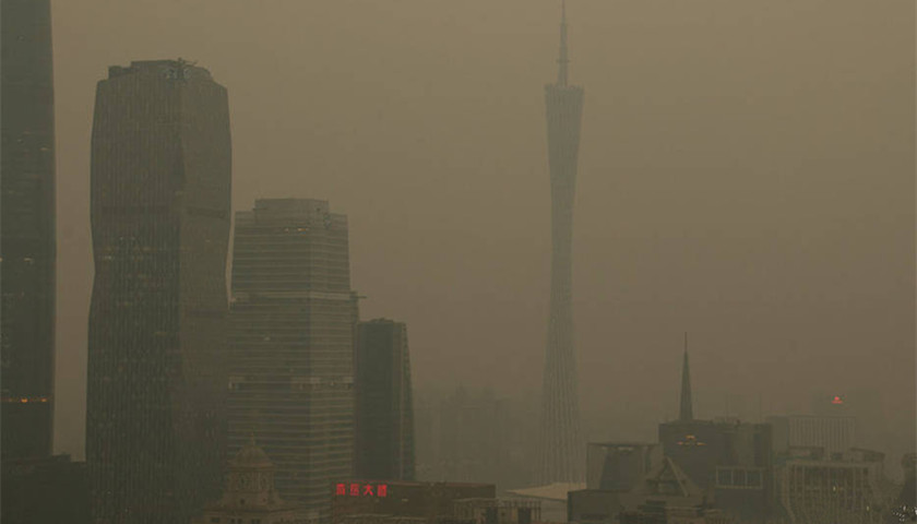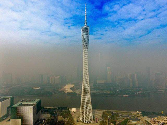 从1月5日开始,广州市区的天空开始整片灰蒙蒙,空气也很沉闷。在微信朋友圈上,《羊城晚报》记者通过无人机航拍广州中心城区蓝天与雾霾分隔的照片传播甚广,照片中广州塔从地面的灰色空气一直延伸至洁净的蓝天,视觉对比强烈。