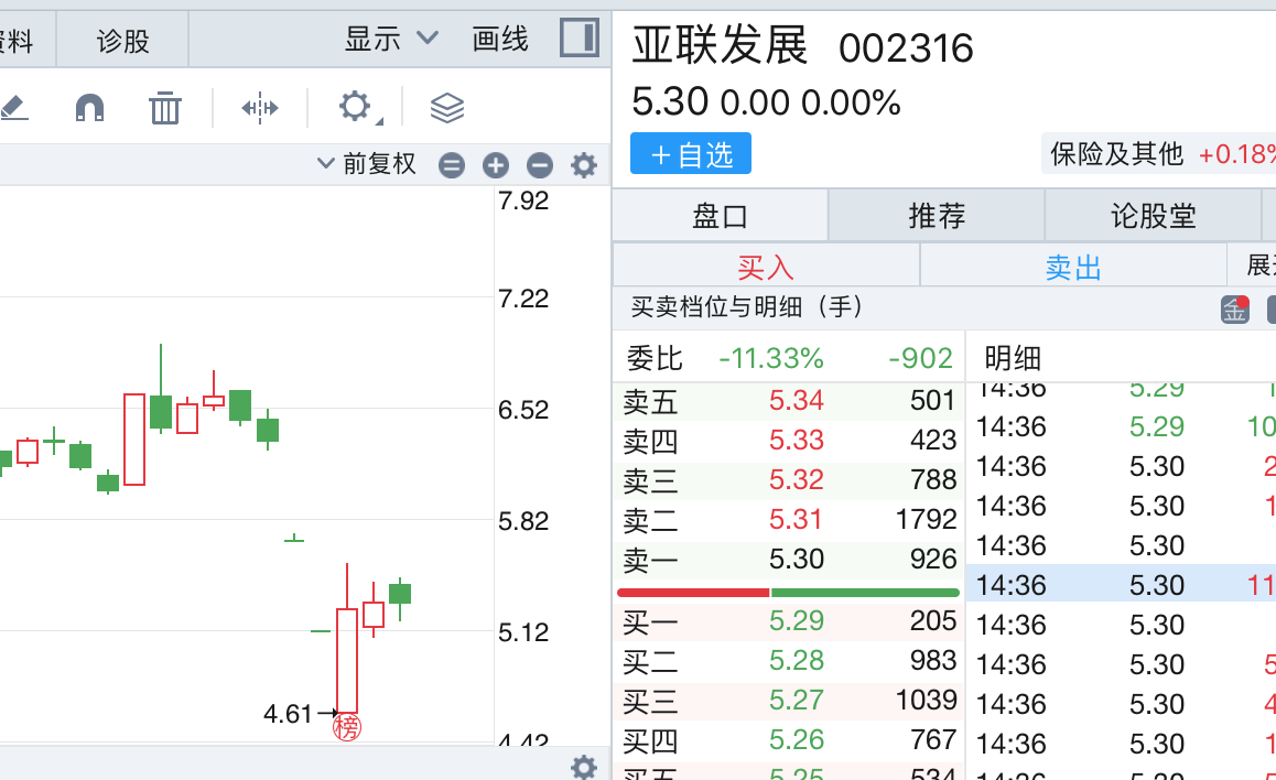 12月19日,盘面表现出现扭转。先是亚联发展以跌停板的4.61元开局,随后以秒计的时间内快速被买单拉起,之后全天横向运行。12月19日收盘时涨幅2.73%,全天换手率24.81%,成交额4亿元。