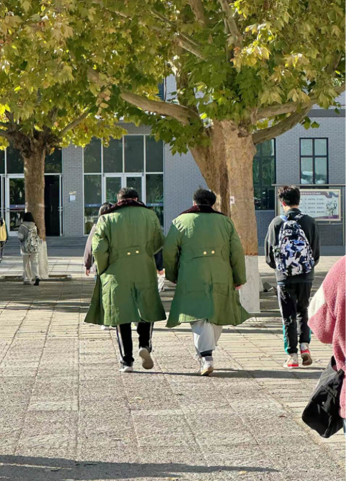 校园里行走的“军大衣”。图源:价值星球拍摄