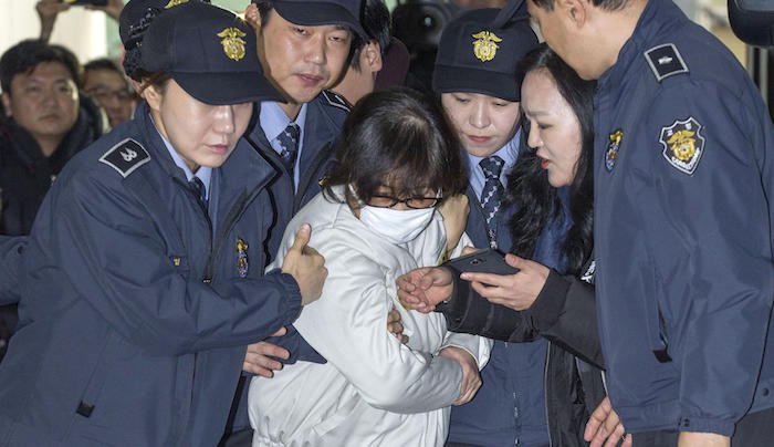 韩国“亲信干政门”关键人物崔顺实5日首次出庭受审,全盘否认指控。