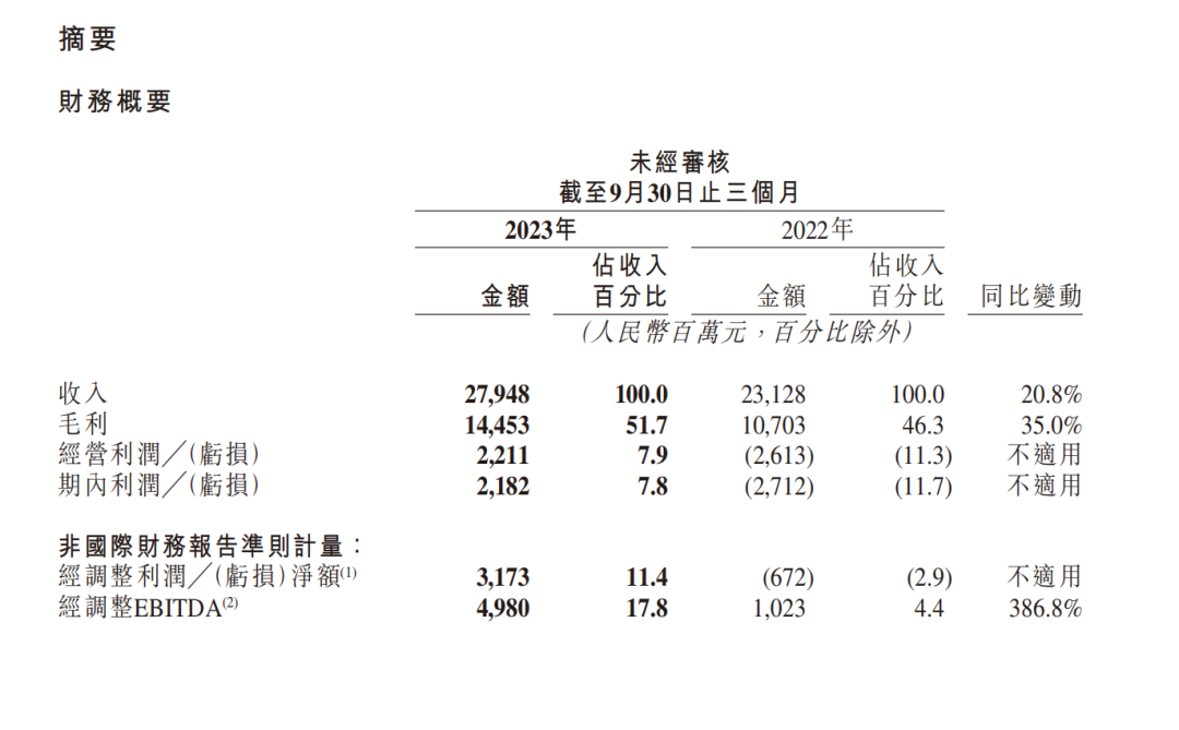 组织上的轻盈和转向也反映到了业绩上,2023年第一季度,快手实现调整后净利润4200万,同比转亏为盈,首次实现上市后的集团层面整体盈利,到第三季度,快手实现总营收为279.48亿元,同比增长20.8%;经调整净利润达31.7亿元,较第二季度环比增长17.8%,超出市场预期。连续三个季度取得盈利,快手终于驶入了盈利的快车道。