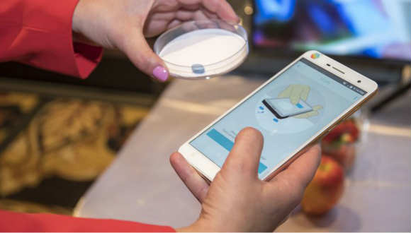 该款智能手机搭载小型化分子光谱传感器,可实现果蔬糖分、水分,药品真伪,皮肤年龄,酒类品质等检测,可直接识别到物质的分子属性。