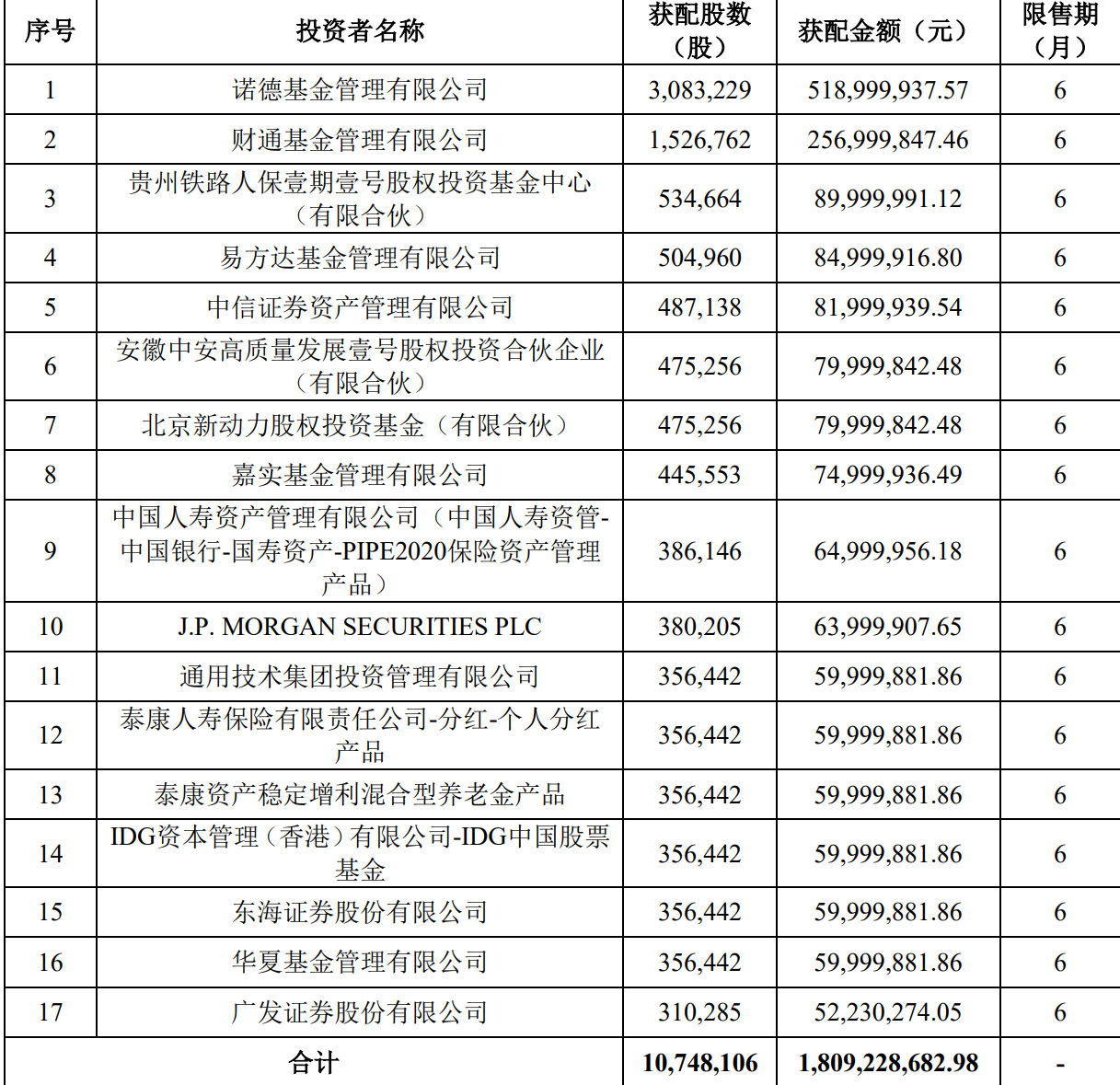 心脉医疗12月21日公告,本次非公开发行公司股票1074.81万股,发行价168.33元/股,募集资金18.09亿元。诺德基金、财通基金等17家获配。