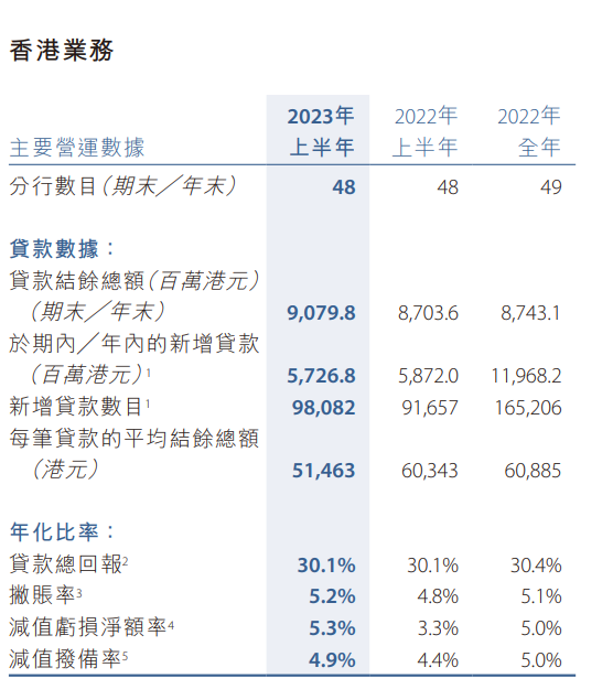 公开信息显示,截至2023年上半年,不包括银行在内,就贷款结余的规模而言,亚联财依然排名第一,而包括银行在内的无抵押贷款,公司排名前5。