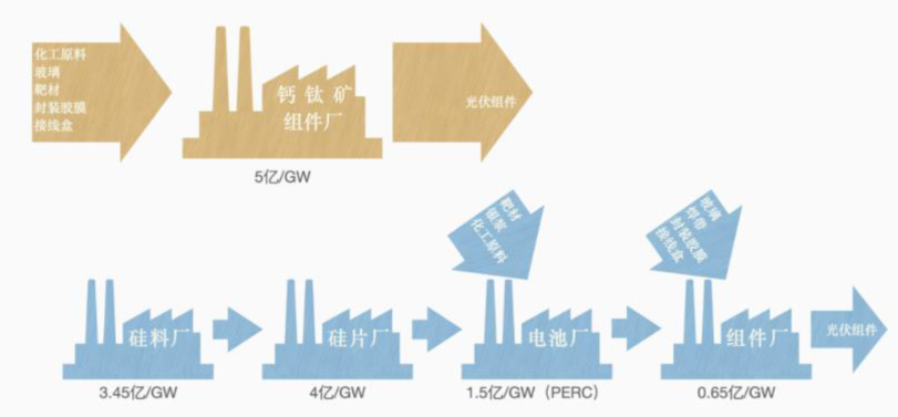 钙钛矿的成本优势主要体现在两方面,材料成本和制造成本。