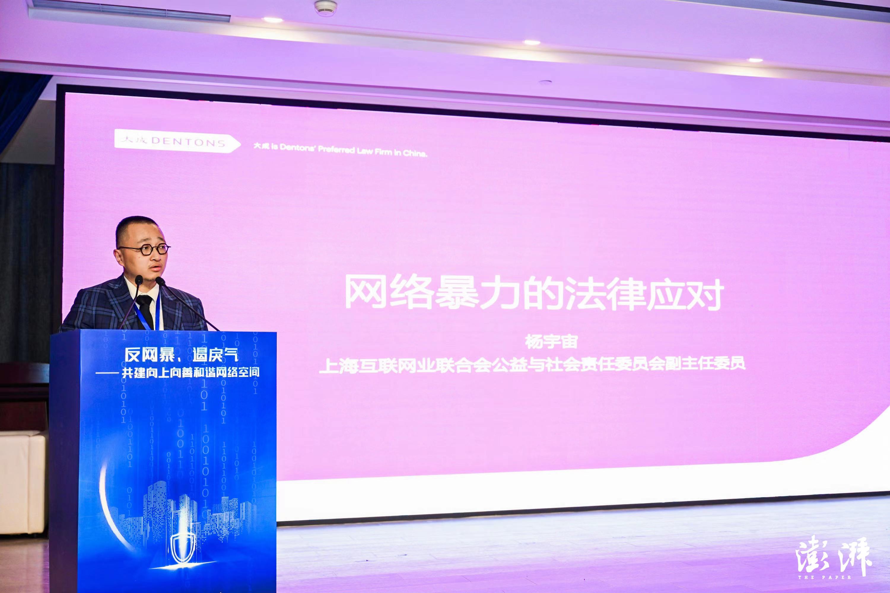 杨宇宙在演讲中呼吁法律界的同仁将自己的时间投入到反网络暴力的法律援助中去。