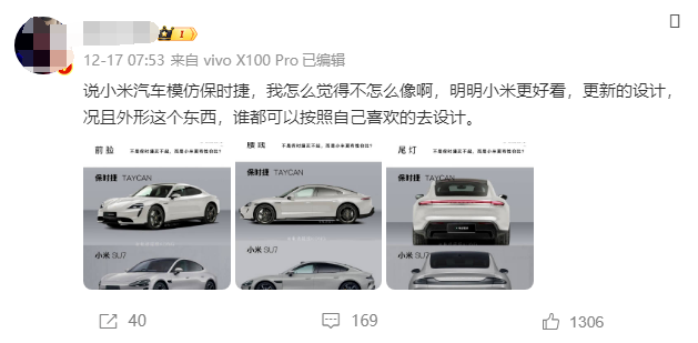 而关于小米汽车和保时捷到底相不相似,网友们也表达了不同的看法:
