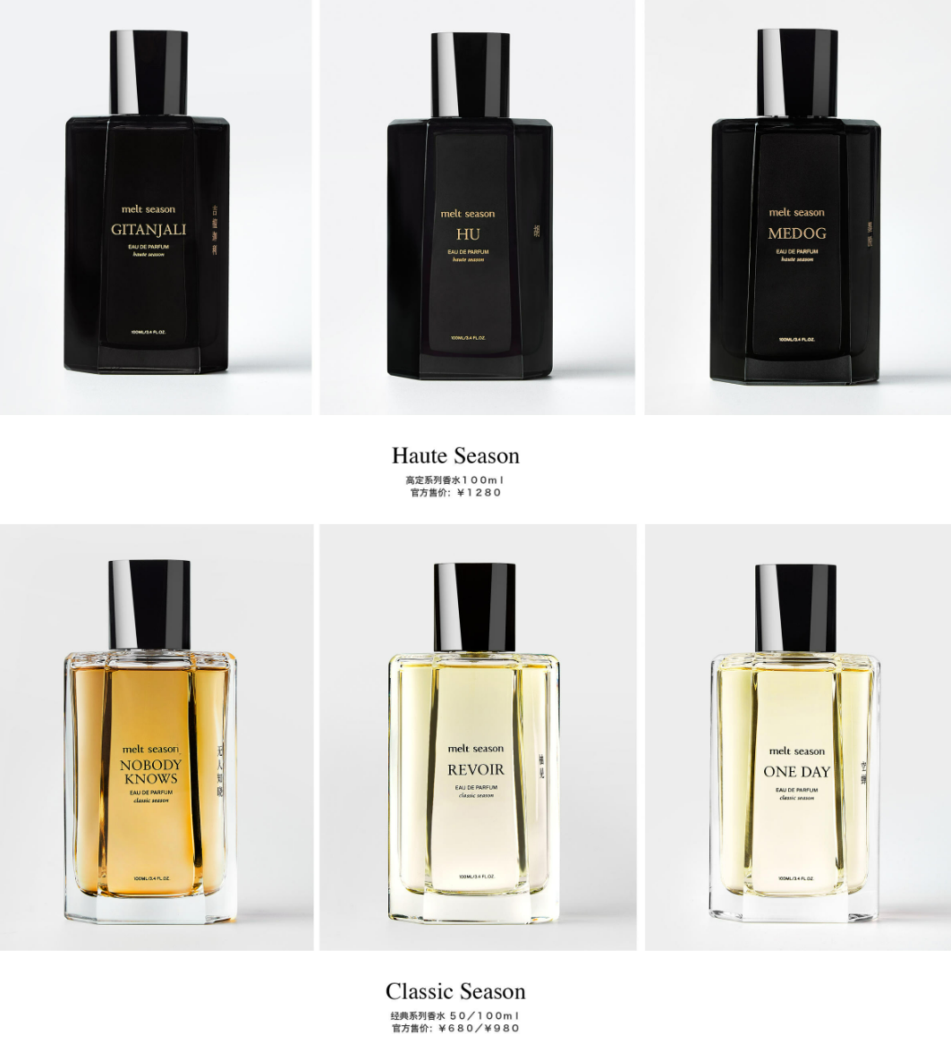据了解,CODE MINT的品牌理念为风靡欧美的“纯净美妆”(Clean Beauty),尽管这一赛道在中国市场上尚处于雏形,但增长十分迅速。天猫数据显示,到2024年,天猫纯净美妆市场规模预计达40亿元以上。而melt season则是定位轻奢的高端沙龙香品牌,旗下香水分为经典系列和高定系列,售价在980元至1280元之间。