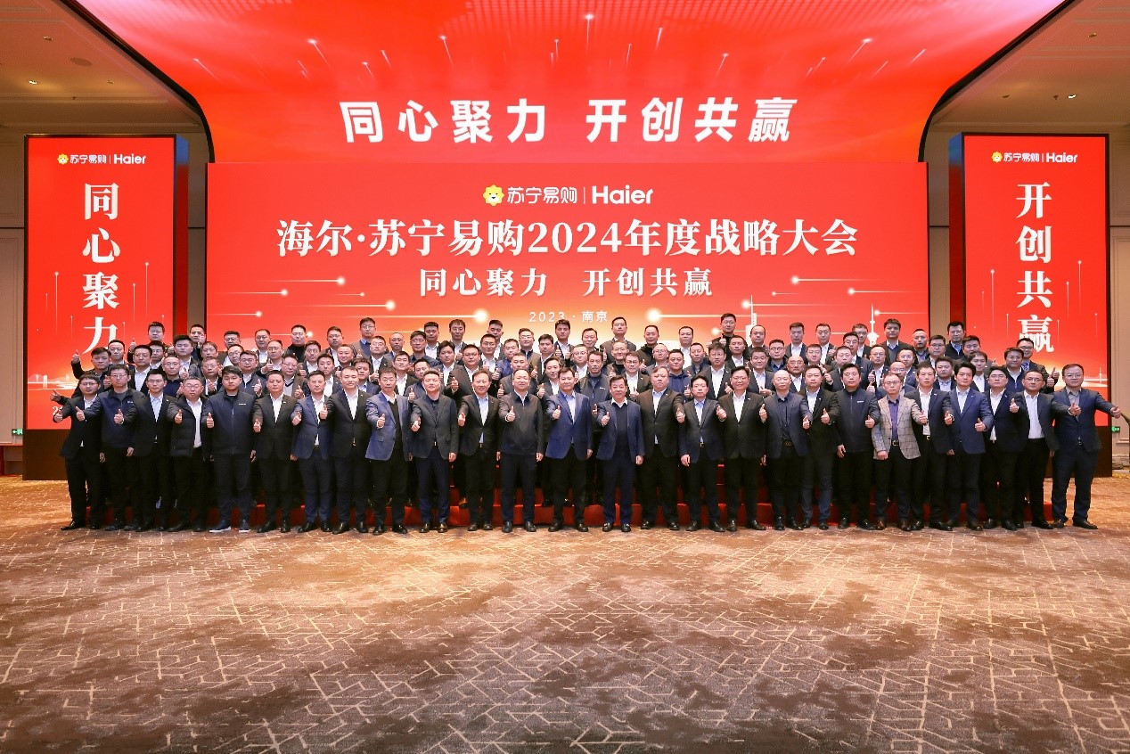临近年末,家电行业零供双方紧锣密鼓规划新年战略合作。12月21日,苏宁易购与海尔召开2024年度战略大会,围绕定制产品共创、用户体验升级、数字化生态建设等达成共识。双方明确2024年度零售目标160亿,卡萨帝目标40亿,并敲定2024年度定制化产品200万台。会后,苏宁集团董事长张近东与海尔集团高层进行会晤,并合影留念。
