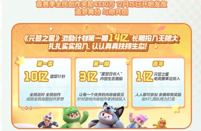 从腾讯首期对《元梦之星》投入的14亿生态激励投入去向来看,腾讯正在多维度布局游戏内容生态,和玩家一起“造梦”。