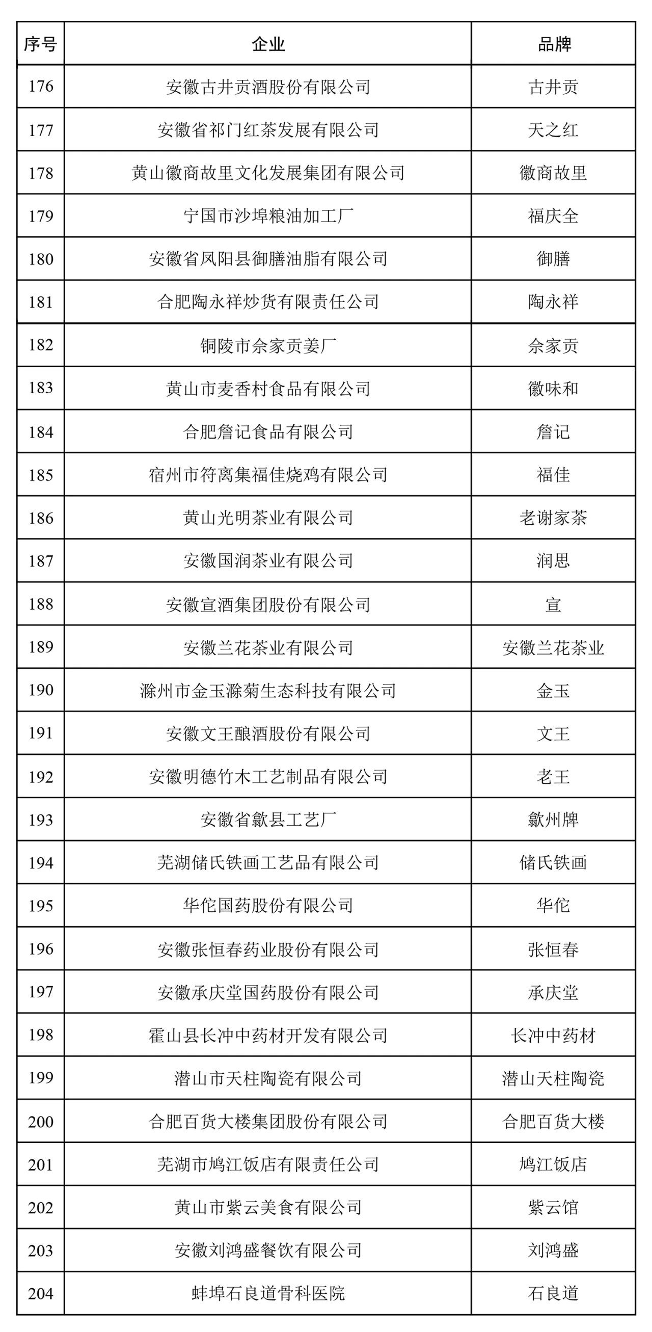 其中,安徽古井贡、天之红、徽商故里、詹记等29个品牌入选。