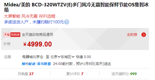 本想请各位读者看一下阿里款和小米款(腾讯款尚未上市)在美的、小米商城、天猫、京东和苏宁的销售数据,但结果除了天猫美的旗舰店上有OS集智冰箱(月销量29),其它平台都未出现这两款产品。