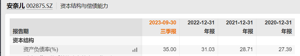 但实际上,安奈儿的债务压力已经在增加。Wind数据显示,2020年-2023年9月,公司资产负债率分别为27.39%、28.71%、31.03%、35%,不断攀升。